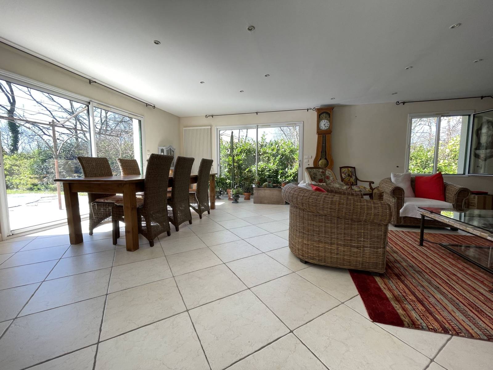 Dès l’entrée, vous serez séduits par la lumière naturelle abondante et les volumes généreux de la maison. La partie jour, spacieuse et conviviale, comprend un séjour de plus de 50 m² avec cheminée, idéal pour les moments en famille ou entre amis, ainsi qu’une cuisine entièrement équipée et dînatoire, récemment rénovée, ouverte sur l’extérieur et pensée pour les repas quotidiens comme pour les grandes occasions.