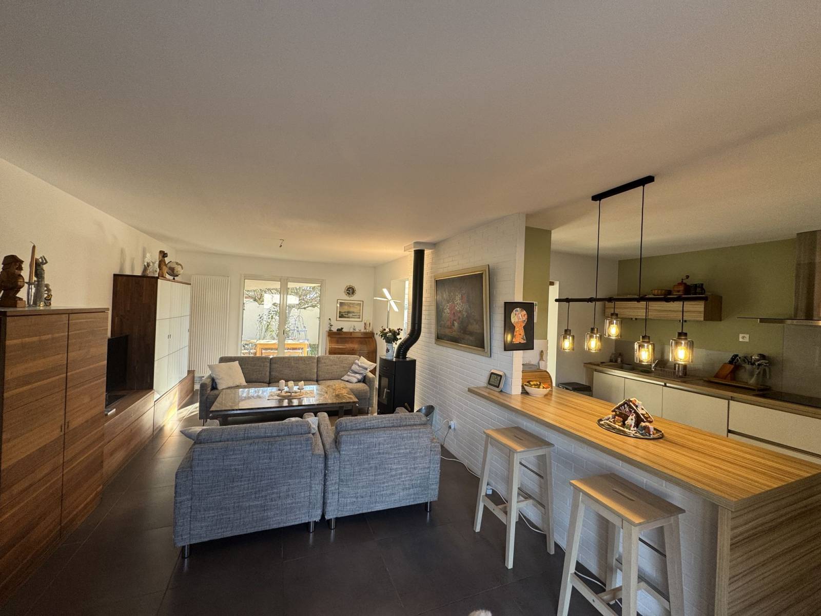 Vous apprécierez le volume et la luminosité de son espace de vie avec cuisine équipée ouverte (complétée par un cellier) donnant sur le jardin et sans aucun vis-à-vis.