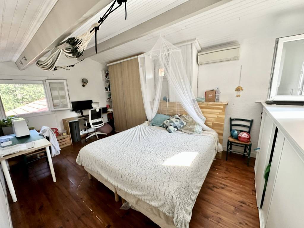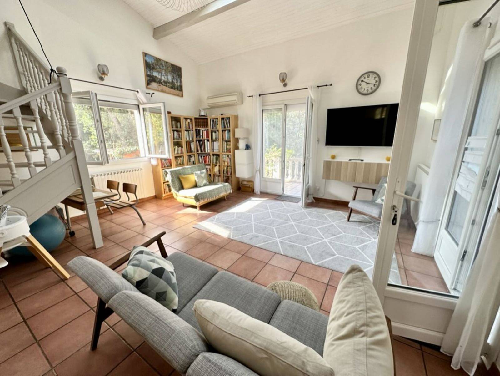 Rénovée par les propriétaires actuels, elle offre le confort de prestations modernes, tels la chaudière à pellets, les panneaux photovoltaïques, la climatisation, dans un cadre idyllique. Par l'entrée, vous accédez à un vaste espace de vie de plus de 44 m² déplafonné avec insert. Sa perspective est prolongée par une vaste terrasse qui s'étire agréablement dans une végétation luxuriante de chênes centenaires. La cuisine, attenante, est entièrement équipée avec un accès direct à cette même terrasse. Pour le côté nuit, vous profitez de 3 belles chambres dont une plus vaste à l'étage. Un bureau, une salle de bains et une buanderie complètent l'ensemble. Pour les plus bricoleurs d'entre vous, un grand garage et un atelier vous attendent en sous/sol. Pour les amateurs de fruits et légumes frais, vous aurez le loisir de la cueillette dans votre serre autonome et innovante Myfood.