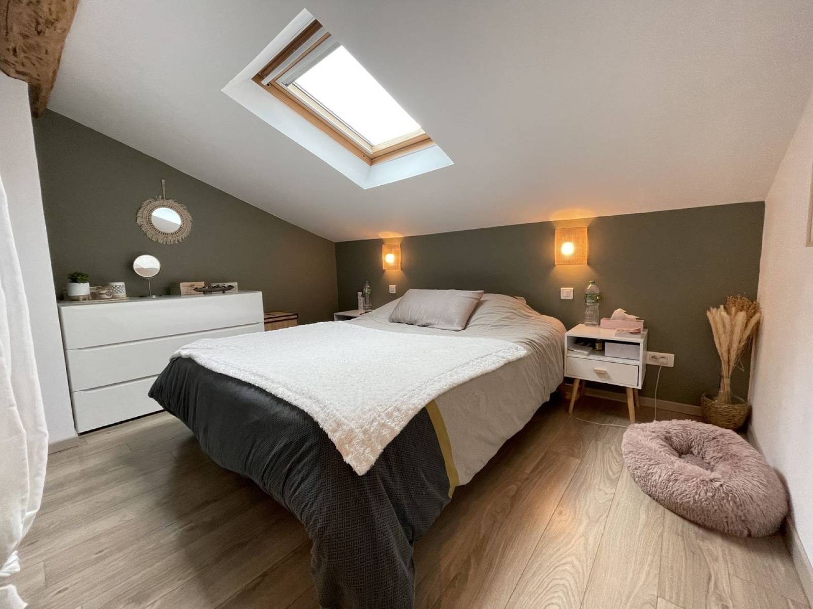 Exclusivité Begue Immobilier Leguevin Centre ! Vous aimez le charme de l'ancien et souhaitez une vie à pied ? Cette coquette maison de village ancienne et entièrement rénovée de 75m2 est faite pour vous ! Vous apprécierez non seulement sa situation en hypercentre de Leguevin mais aussi son cachet en briquettes toulousaines et la qualité de sa rénovation. Au RDC se déploient une magnifique pièce de vie traversante avec cheminée monumentale, cuisine design et accès direct au patio intime. A l'étage, vous profitez de deux chaleureuses chambres mansardées, d'une salle d'eau et de la clim ! Idéalement située, la maison bénéficie non seulement d'un patio sans vis à vis, parfait pour vos soirées d'été mais également d'un garage fermé pour une voiture avec en complément un espace rochelle. Un joli cocon. Le vôtre ?