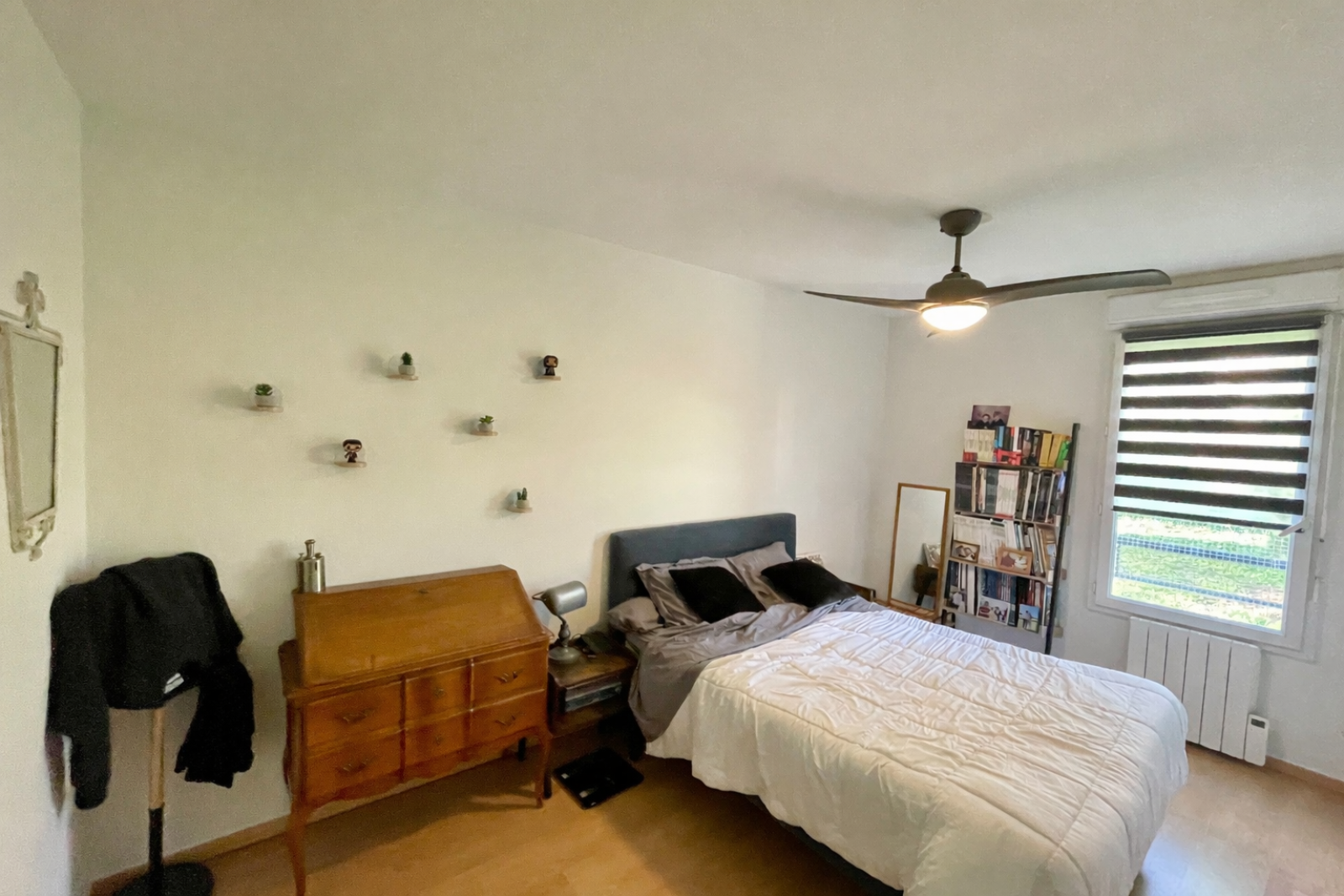 La cuisine équipée est attenante. Vous profitez de deux belles chambres, au calme, donnant sur jardin sans nuisance. Une salle de bains, un toilette séparé et un espace buanderie complètent l'ensemble. L'appartement est très bien entretenu, tout comme la résidence.