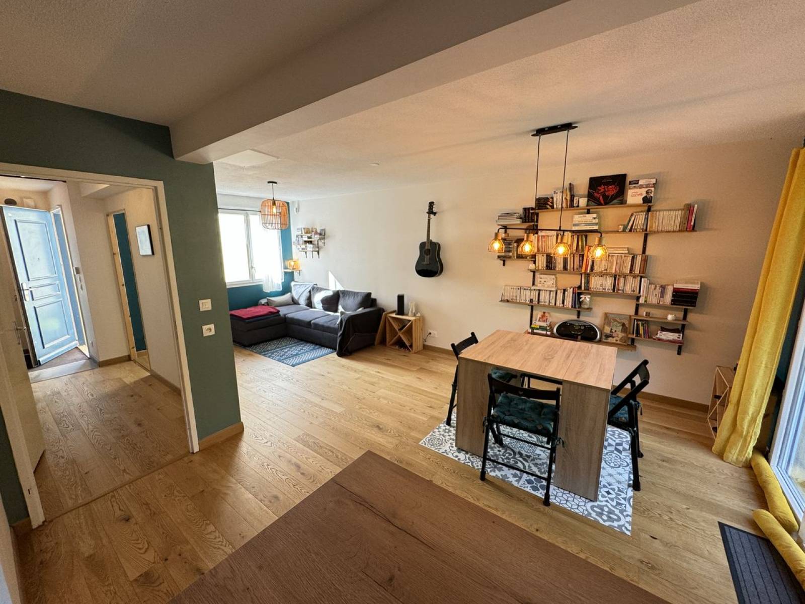 Par une entrée bien séparée vous accédez au salon de 22m² offrant une ambiance chaleureuse par son parquet au sol et l'accès à la terrasse.