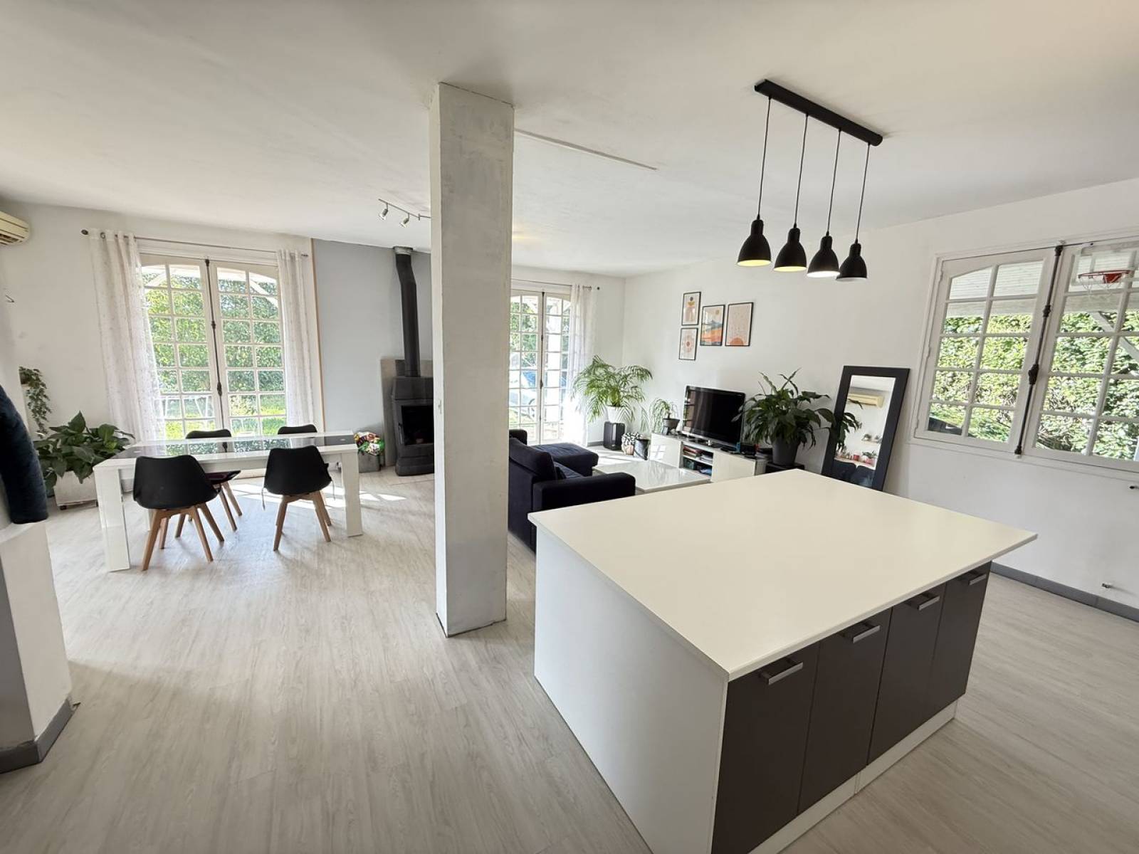 D’une superficie habitable d’environ 108 m², cette agréable maison de type 5 se compose d’une entrée menant à un vaste séjour lumineux, prolongé par une salle à manger conviviale et une cuisine ouverte fonctionnelle, avec accès direct au garage. Un espace parfait pour la vie de famille et la réception de vos proches.