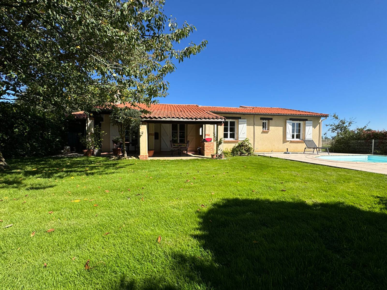 Découvrez cette maison T5 de plain pied développant un peu plus de 100m2 sur une jolie parcelle arborée de plus de 1500m2. Outre le bénéfice d'une jolie piscine à l'abri des regards, vous en apprécierez les espaces.