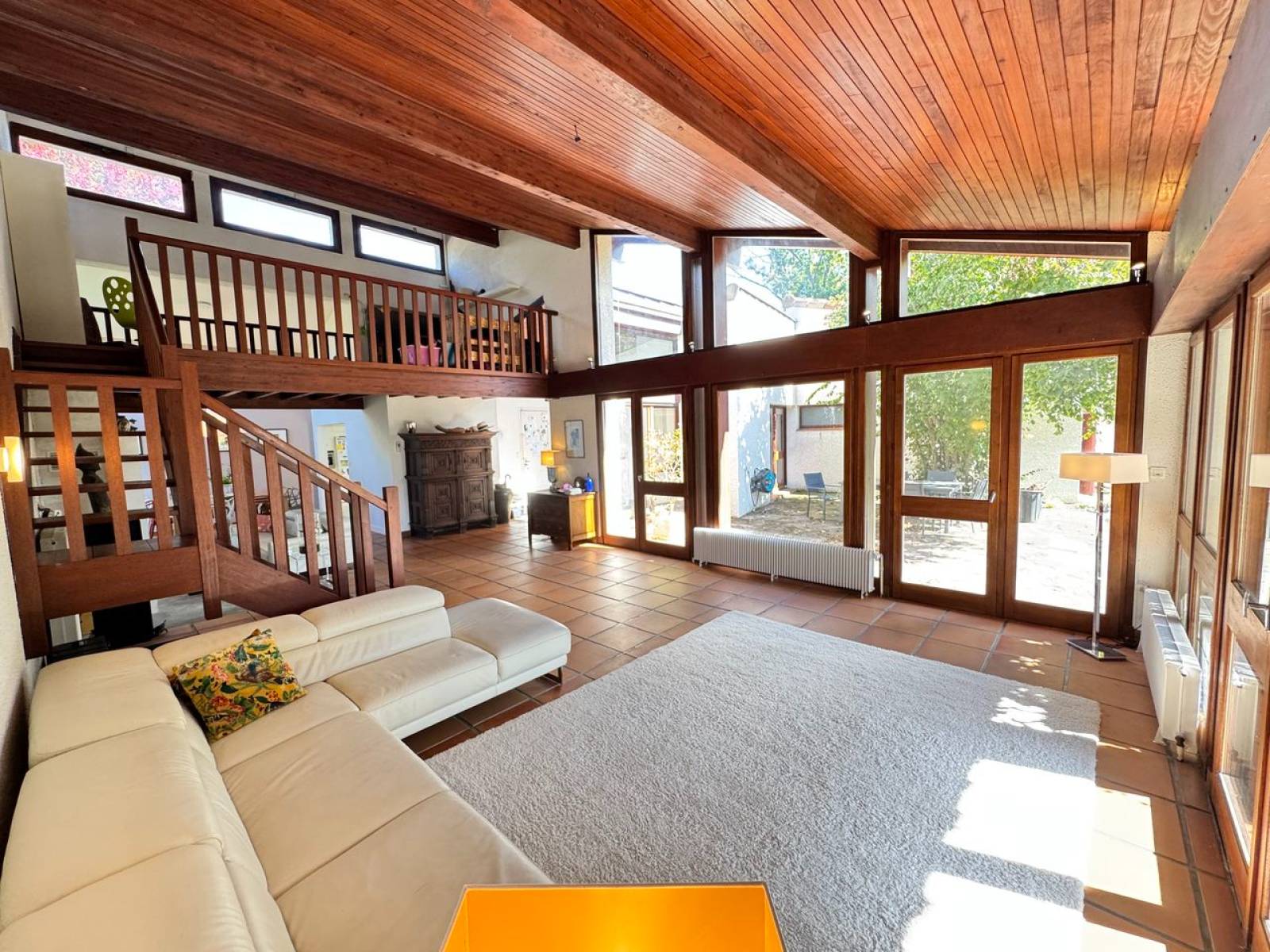 En entrant, se déploie un vaste séjour déplafonné particulièrement lumineux de plus de 50m² avec son grand espace mezzanine. Il côtoie une cuisine entièrement équipée (14m2) avec îlot central. Vous disposez également de 5 grandes chambres, d'une salle de bain et d'une salle d'eau.