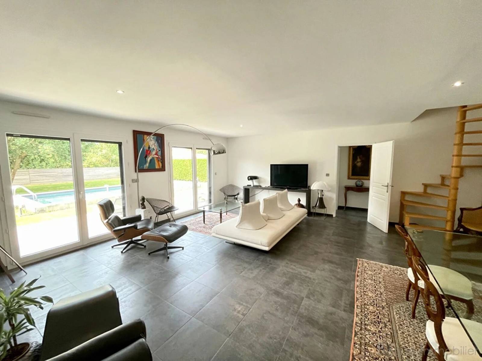 Unique, elle l'est. Rare, d'autant plus. Un vaste séjour d'environ 45m² s'offre à vous, avec vue apaisante sur le jardin et la piscine. Il est prolongé par une généreuse terrasse où vous apprécierez les repas d'été.