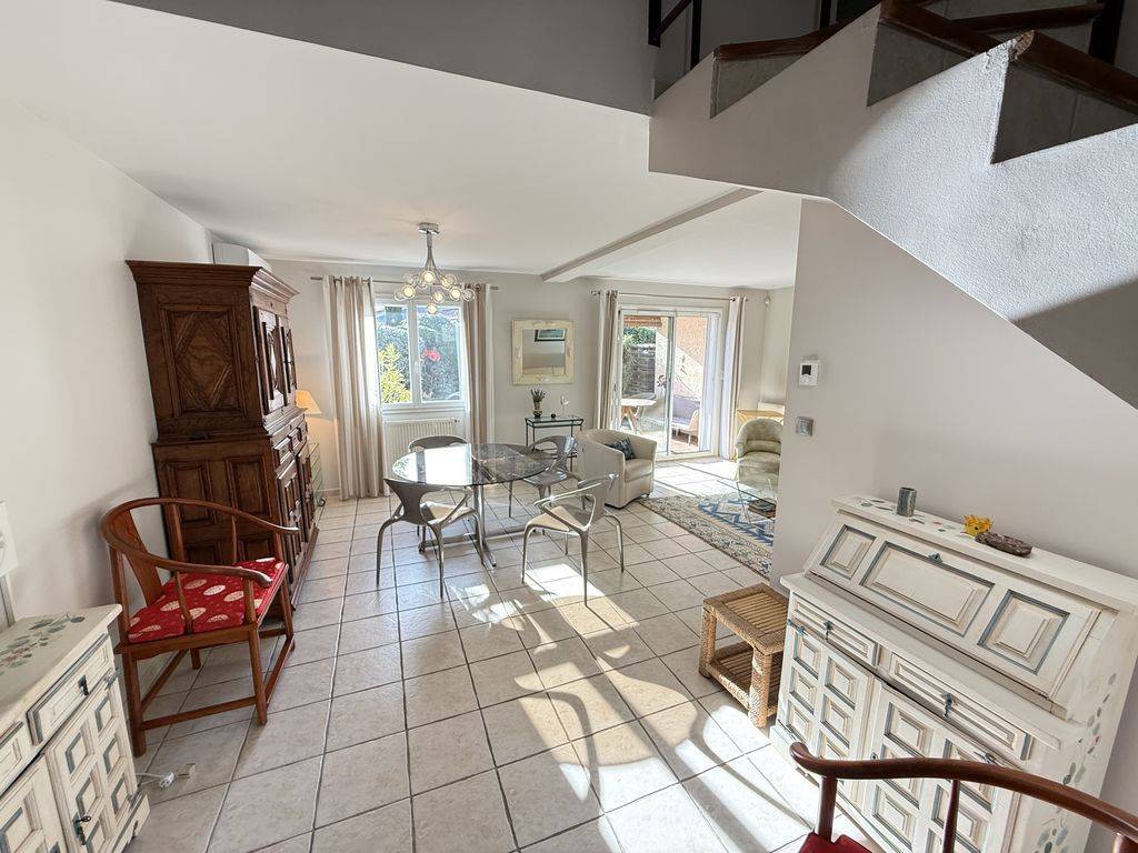 Depuis l'entrée déplafonnée, vous accédez à un vaste espace de vie de plus de 35m2 climatisé prolongé par une terrasse couverte.