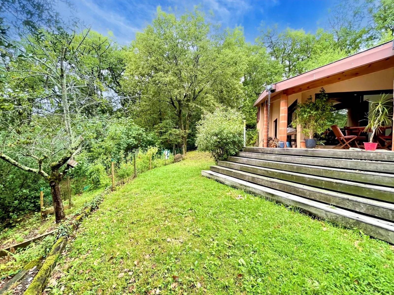 A proximité du coeur de village, dans un environnement de premier ordre, au calme absolu, venez découvrir cette belle villa d'architecte qui déploie plus de 160m2 sur une parcelle majoritairement boisée de plus de 3994 m2.