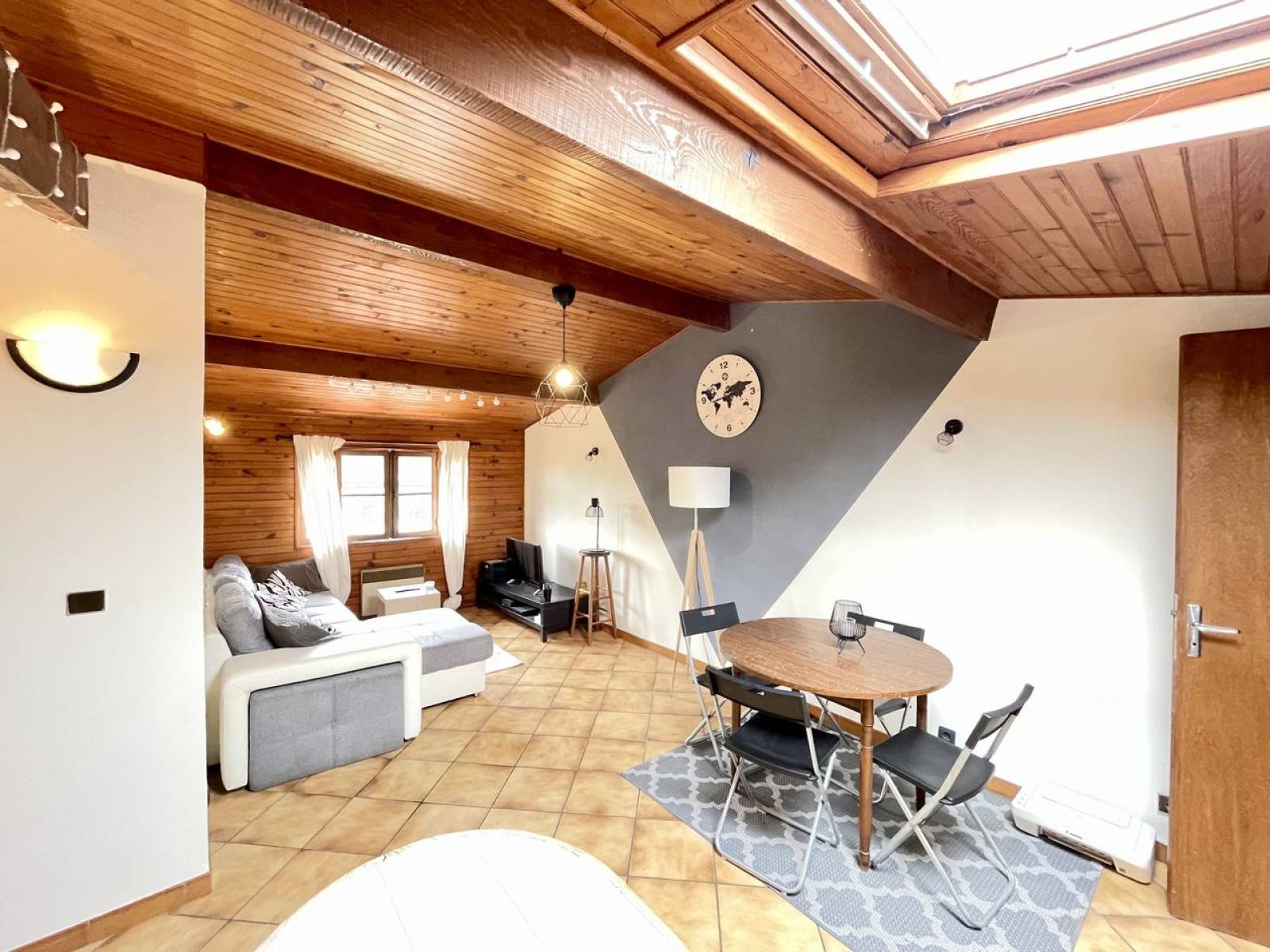 L’étage, accessible par un escalier extérieur – avec la possibilité de créer une liaison intérieure –, développe un espace supplémentaire de grande qualité. Vous y trouverez deux chambres, un salon avec cuisine aménagée, une salle de bains et un WC. Cet aménagement se prête parfaitement à la création d’un appartement indépendant, d’un espace locatif ou d’un bureau pour une activité professionnelle à domicile.